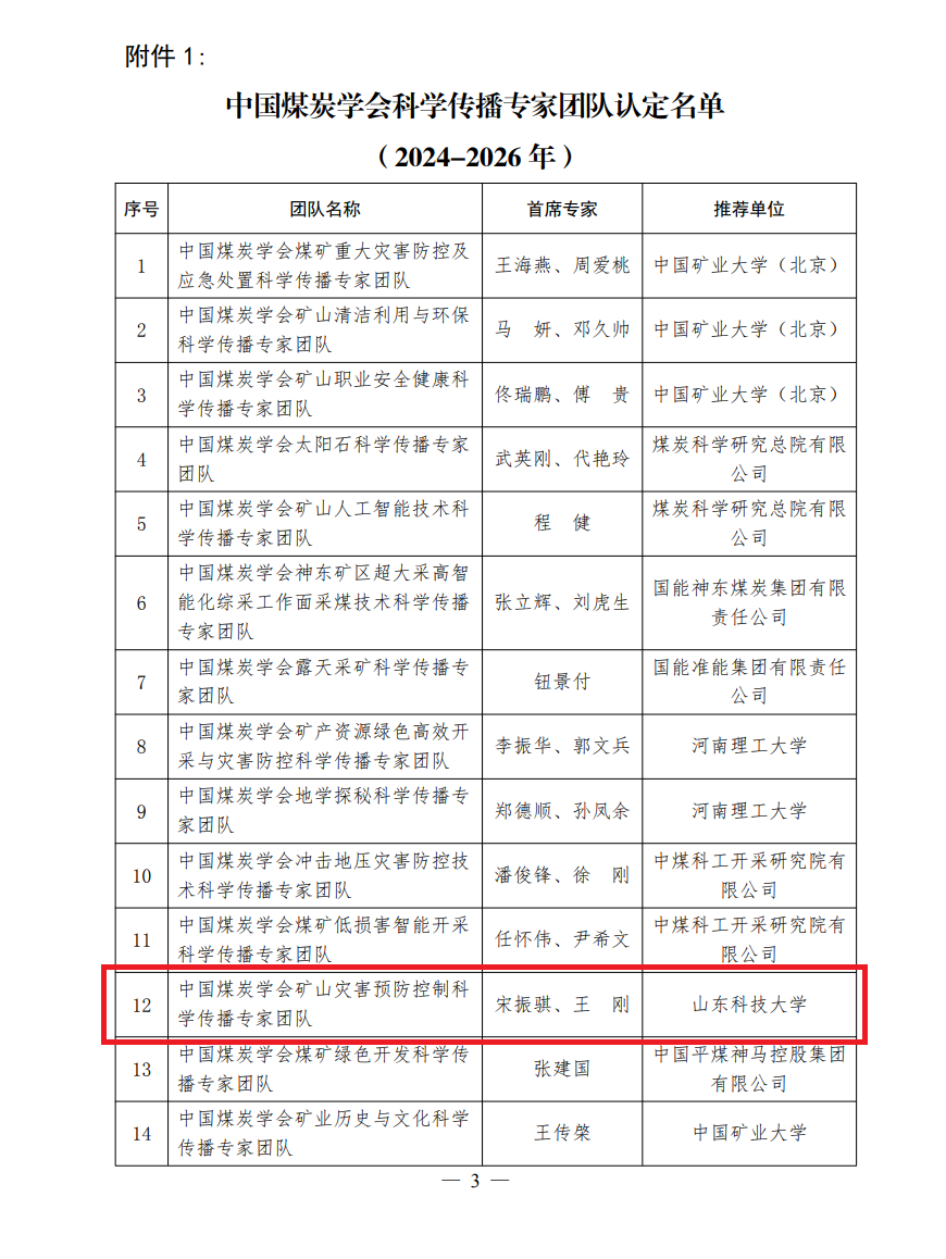 近日,中国煤炭学会公布了2024年科学传播专家团队认定名单,矿山灾害预防控制yl34511线路中心牵头申报的“中国煤炭学会矿山灾害预防控制科学传播专家团队”正式获批。